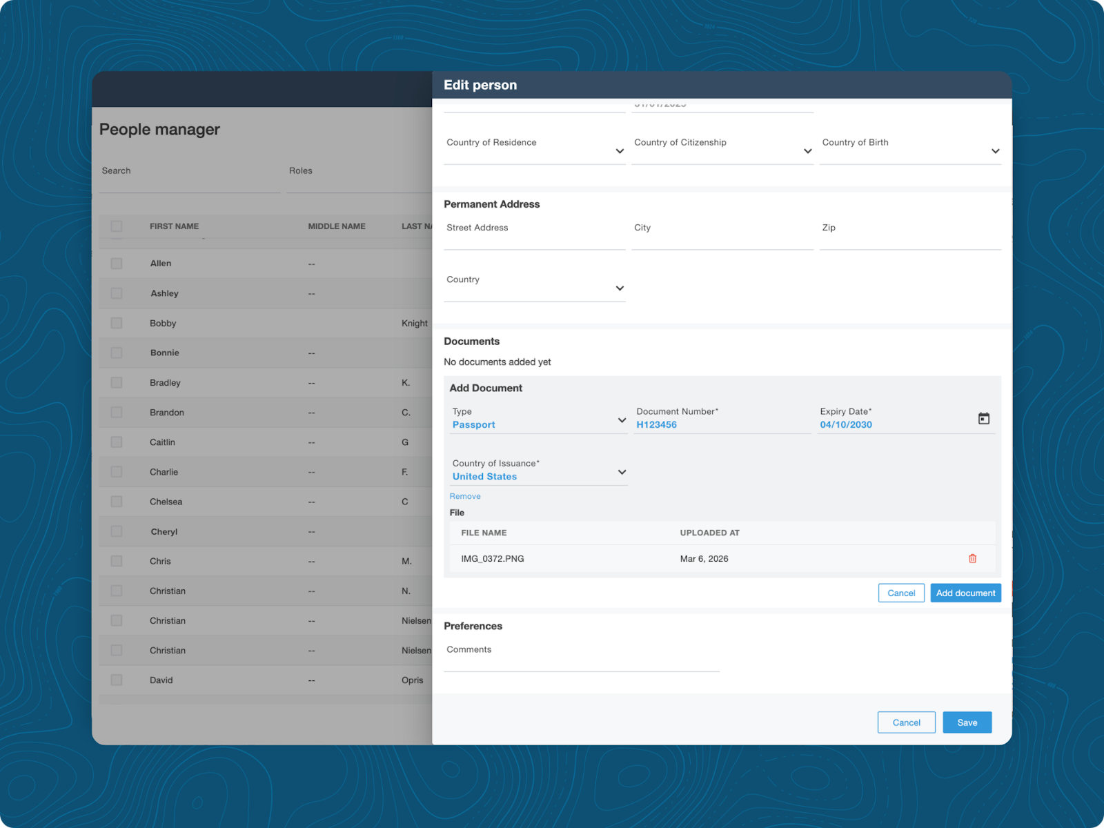 An international charter departs Westchester County Airport (KHPN) at 10 AM. A few hours before departure, the planner learns that one of the three passengers has been swapped. They quickly update the passenger in Dispatch, rebuild the manifest using stored passenger information, and refile with eAPIS before the crew arrives at the aircraft.