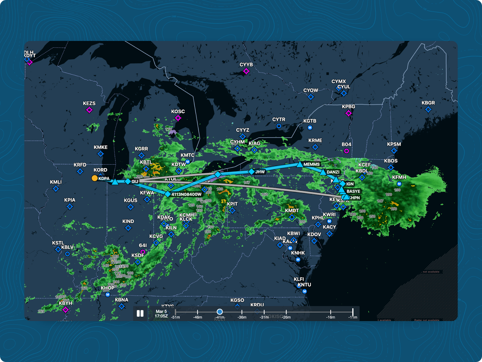 Planning a route without a live map view means potential conflicts don’t surface until the plan is filed, or until the crew is airborne and ATC issues a reroute. Checking the weather in a separate application and then comparing it with the planned route is a two-step process that can lead to missed items. A reroute that could have been built into the original plan becomes a coordination challenge mid-flight.