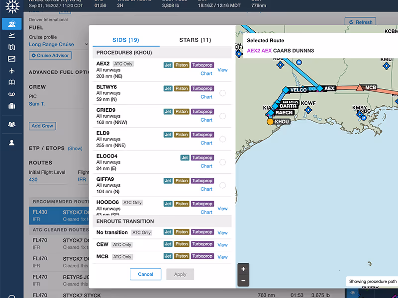 Simplificando e otimizando o planejamento de voos ao mesmo tempo em que conecta planejadores de voo e pilotos.
