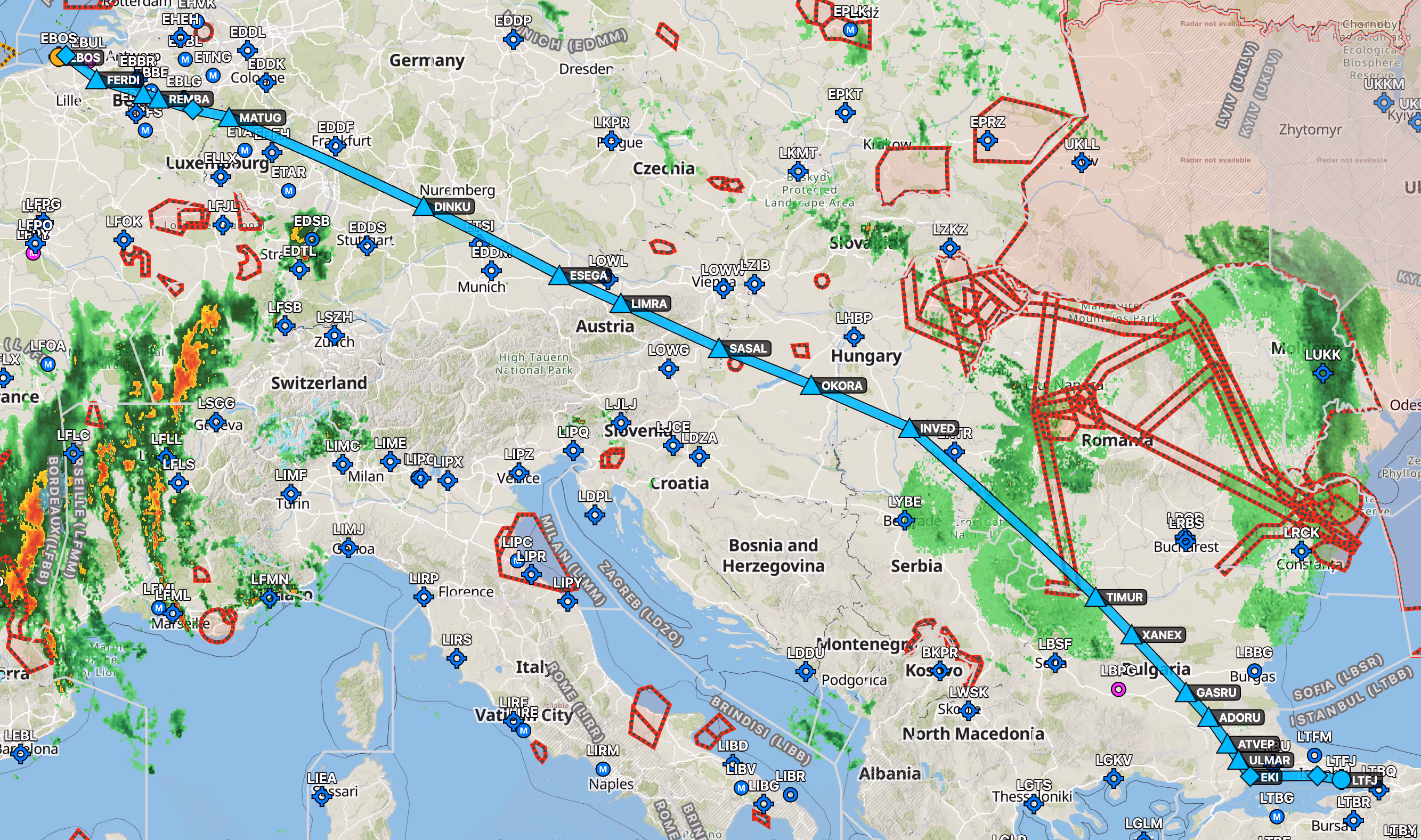 Geopolitical events can suddenly close airspace, requiring last-minute modifications and rerouting. These regions also pose GPS spoofing and jamming risks, often necessitating two planned routes per flight, doubling the time required for each flight plan.