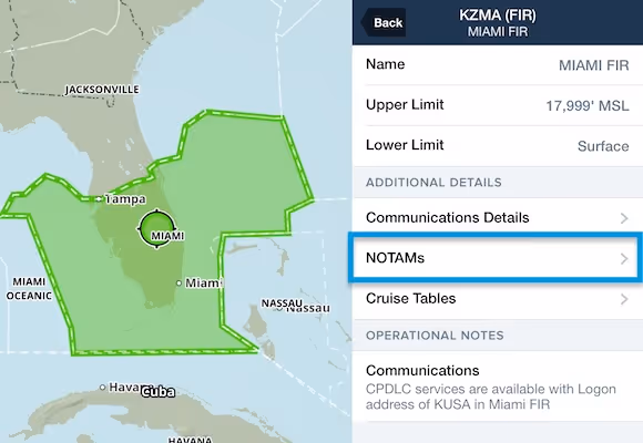 Enhances flight safety by providing critical NOTAM information for ARTCC and FIR directly within ForeFlight Mobile