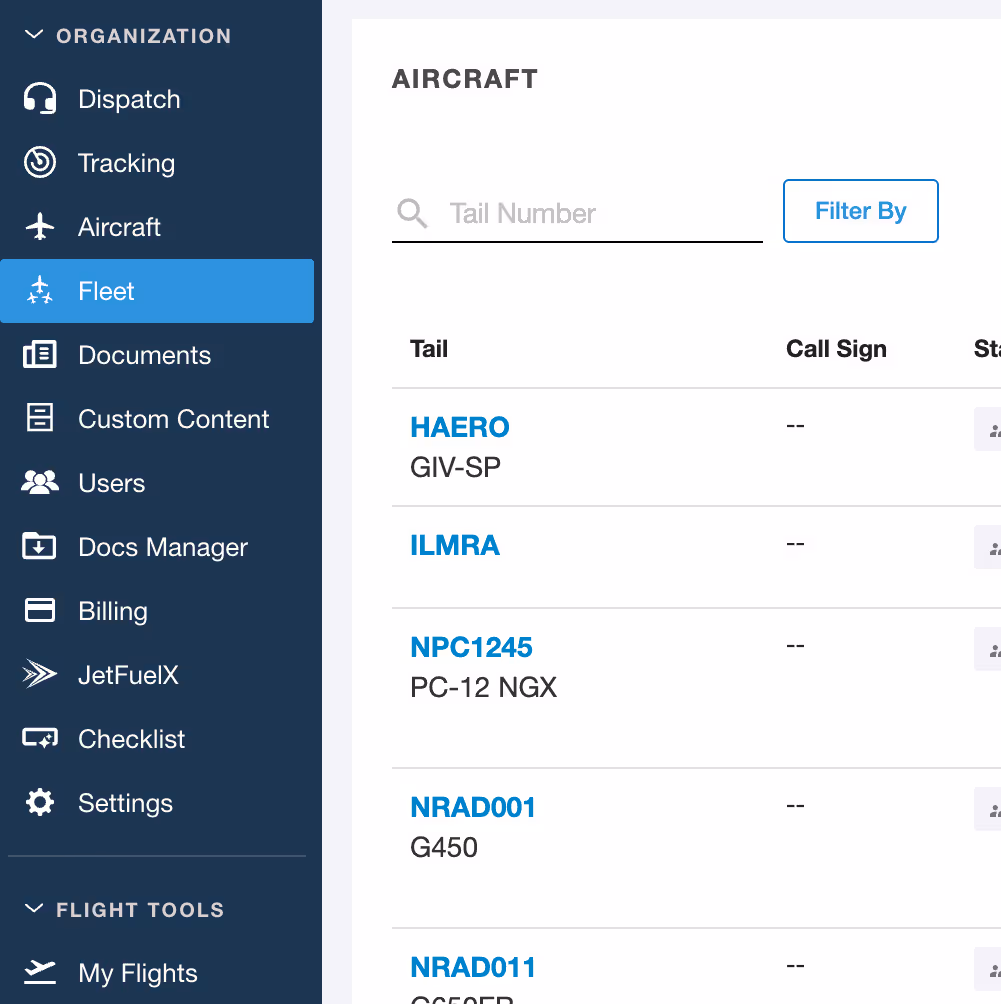Streamline fleet oversight with an instant view of all affiliated aircraft and their key attributes.